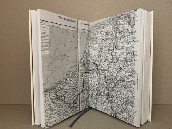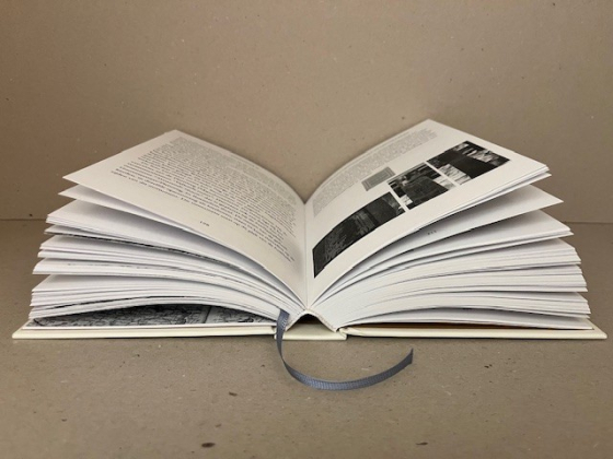 Omslag krasvast matlaminaat – kapitaalbandjes en leeslint.